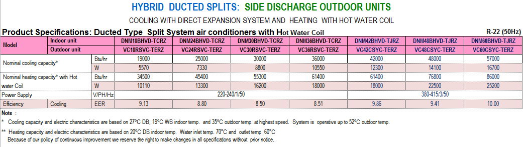 Hybrid Ducted Splits with Side Discharge Outdoor unit